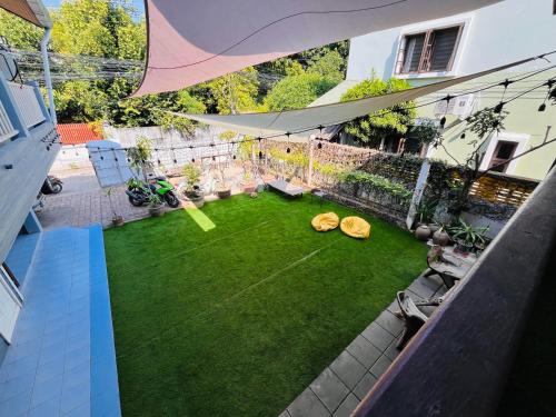 学校のすぐ前にある、緑豊かな中庭を持つ隠れ家的な新しいホステル。